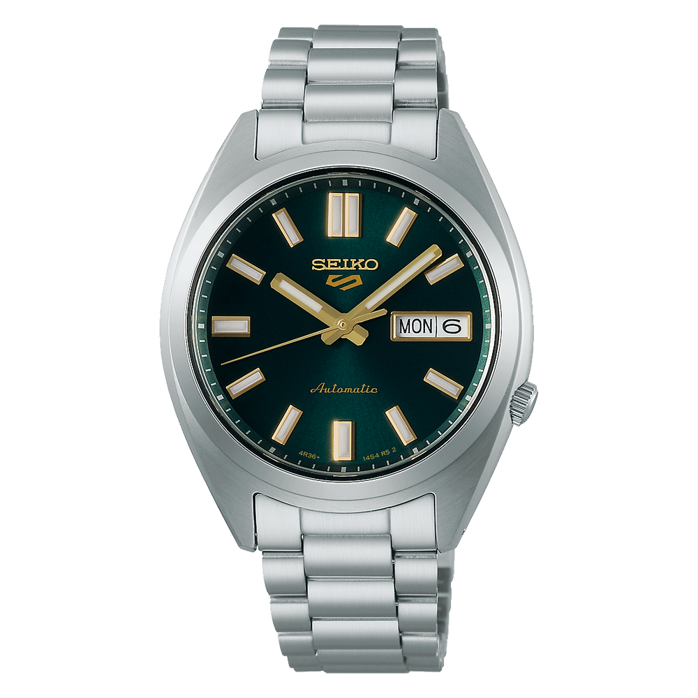 The Seiko SRPL57K1 Green Dial is a bold and functional automatic GMT watch from the Seiko 5 Sports collection, designed for travelers and everyday wear. Its rich green dial adds a distinctive, modern edge while keeping the sporty DNA Seiko is known for.
